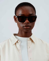 The sunglasses are crafted from premium Japanese titanium and plant-based acetate. Plant-based acetate is more durable than regular plastic. It is also flexible and hypoallergenic. Titanium is stronger than stainless steel, nickel-free and corrosion resistant.